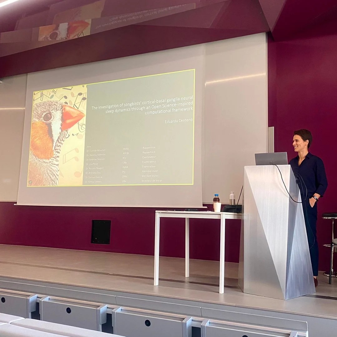 Late last year, I completed my Ph.D. and successfully defended my dissertation, titled “The investigation of songbirds’ cortical-basal ganglia neural sleep dynamics through an Open Science-inspired computational framework.“ In this project, I developed and integrated an Open Science-inspired infrastructure for data collection, management, analysis, and sharing to support research on how zebra finches learn and consolidate their songs. The four years I devoted to this work were both challenging —true to the nature of most Ph.D. journeys— and rewarding. I gained invaluable knowledge, met great people, and grew personally and professionally. Most importantly, I gained clarity about the paths I want to pursue —and those I don’t— after my defense. While the thesis itself tells one story, I always recommend reading the acknowledgements section and the appendix. It’s there you’ll find the real heart of the project: the incredible people who walked alongside me and helped me reach the finish line, and the side projects that kept me motivated throughout the years.